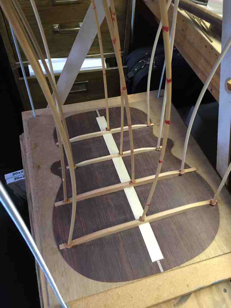I started making guitars in 1996 after a trip to the C.F. Martin guitar factory in Nazareth, Pa. I’m not certain what I expected to see there but most of the workers were women with a few younger men assembling instruments. Each work station had a very limited scope of work. For example one station just glued the back braces onto the back using a jig to show where they were located. Another just put the purfling (black and white plastic strips) around the sound hole. I thought that this was something I could do if I could find the parts. I asked the tour guide (Chris Martin) if they just sold parts and he told me where the old factory was in town. They sold kits for about $400 that contained all of the wood parts and hardware for a single dreadnaught guitar. I remember thinking that was expensive and decided to wait when I noticed several people in the back of the store gathering parts and piling them on tables. I asked who they were and she said they were “Luthiers” buying parts for their guitar projects. She asked if I was a “Luthier”; I said “yes, I am” and went back to join them. They helped me gather enough parts from the factory parts to make six guitars. There was a complete neck with frets installed and tuner holes drilled with the Martin logo sanded off. There were several tops and backs with the braces glued on and bent sides with the kerfing installed. I could glue together four pieces to make a guitar. What could be easier? The pile cost me $100 and I was on my way.