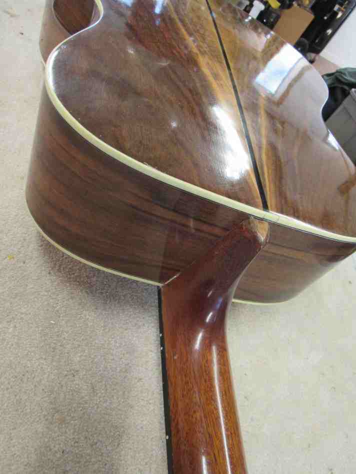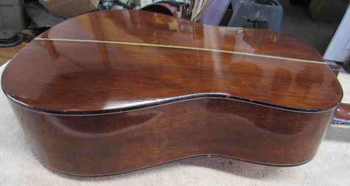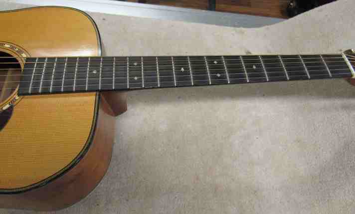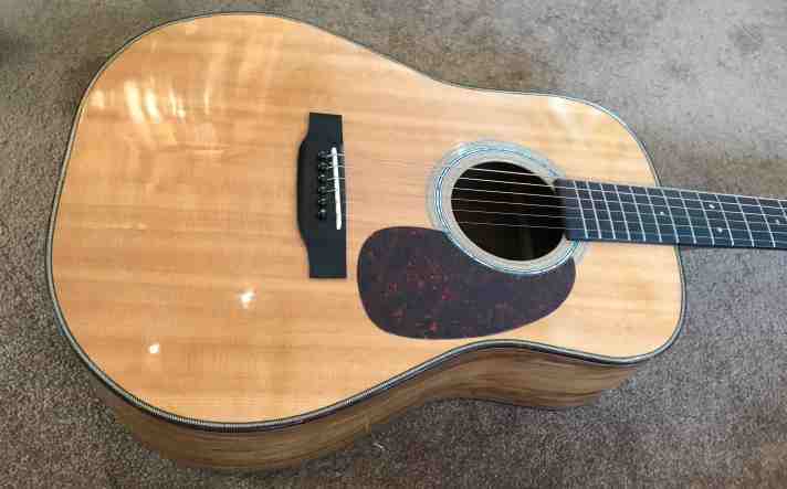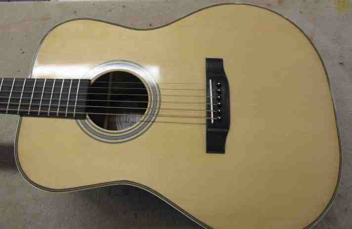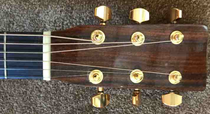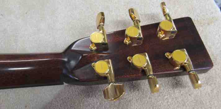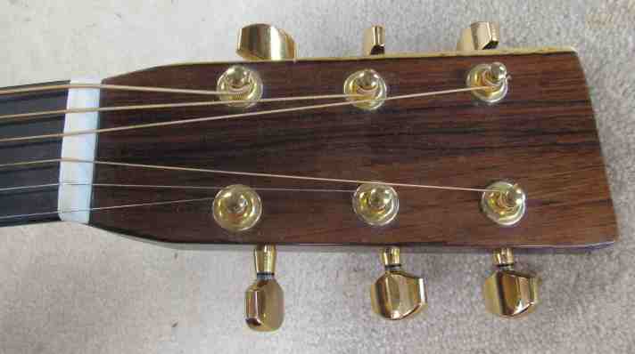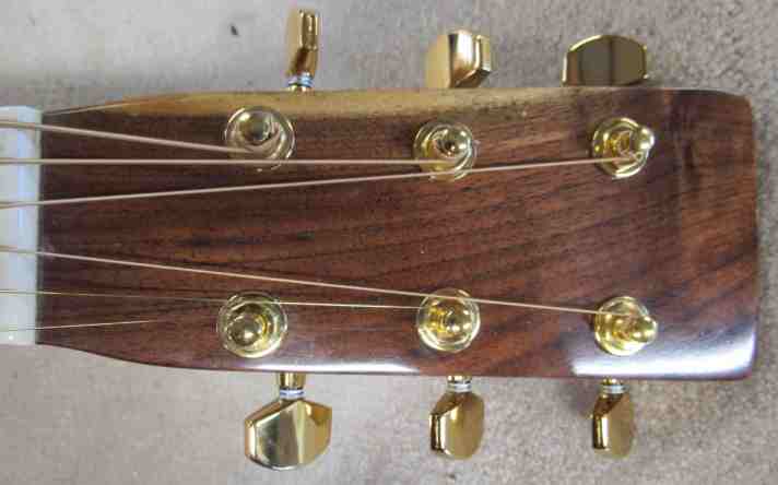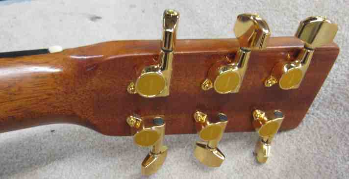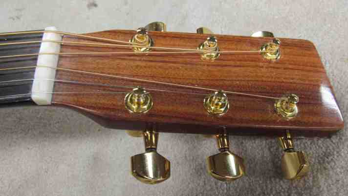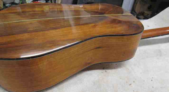 Claro Walnut Dreadnaught Guitar. Claro Walnut back with ebony strip, walnut sides and peghead veneer. Mahogany (Martin) neck with bone nut and Saddle. Ebony fretboard and bridge. Gotoh gold tuners. $2000