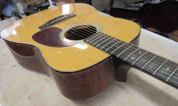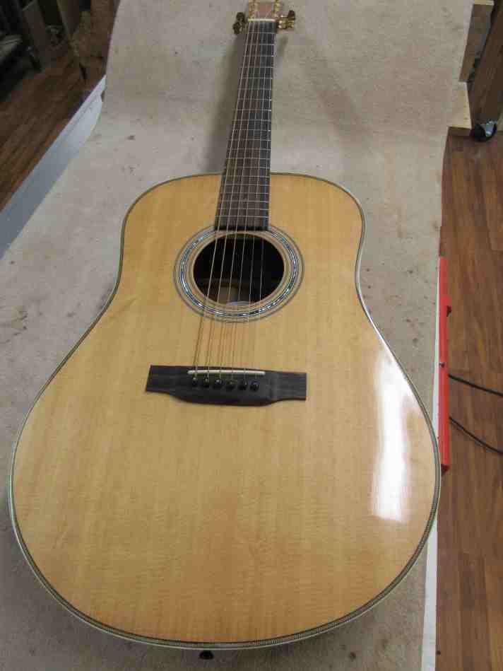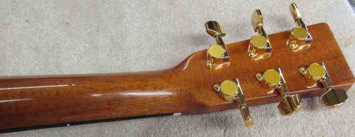 Mahogany Dreadnaught Guitar. Mahogany sides and 2-piece back, Sitka Spruce top and Mahogany (Martin) neck with Mahogany pegged veneer. Mellow and loud with Dreadnaught profile. Gold Gotoh tuners and hard case. SOLD