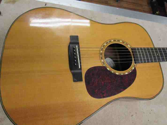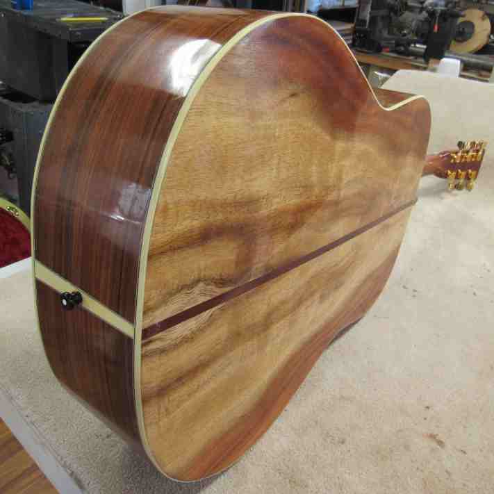 Koa-Murado Combo Dreadnaught Guitar. A Koa back and Bolivian Rosewood sides are part of this Dreadnaught. It has a Sitka Spruce top, ebony fretboard and bridge with bone saddle. Koa headstock veneer with gold Gotoh tuners and a Mahogany (Martin) neck complete this great-sounding guitar. Comes with hard case. $2200