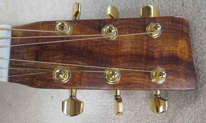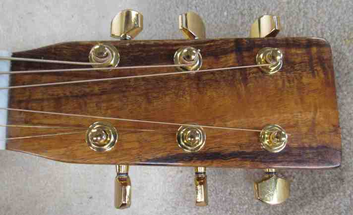 Koa Dreadnaught Guitar. Another all Koa body with Englemann Spruce top and Mahogany neck with Koa peghead veneer. Mellow tone like mahogany but much prettier. Gold Gotoh tuners and bone nut and saddle. With hard case. This guitar can be seen at Bridge-Kaldro Music in Christiansburg. $2400