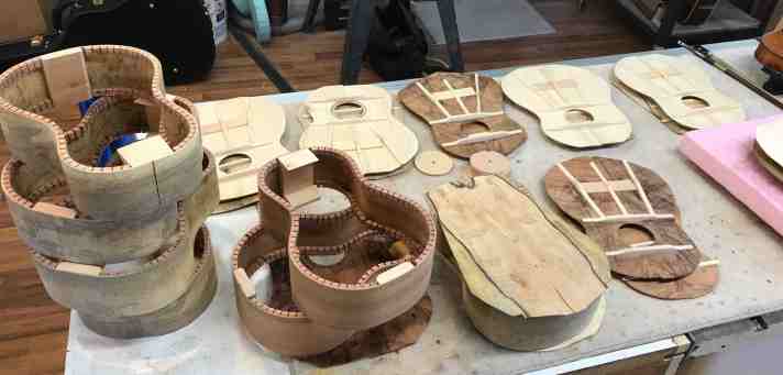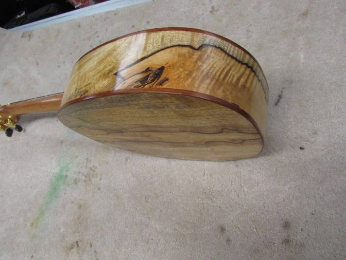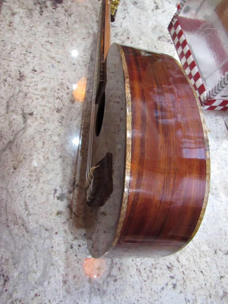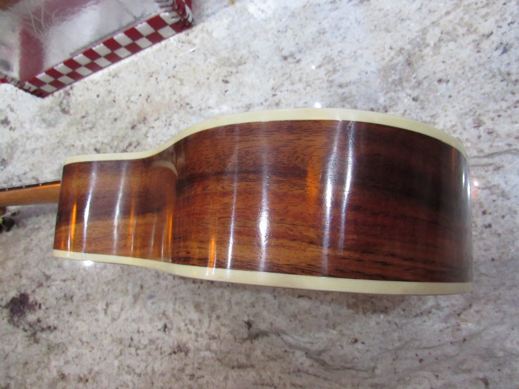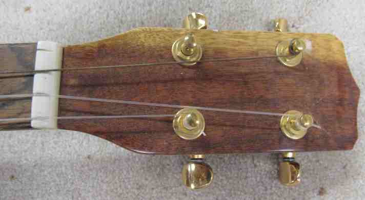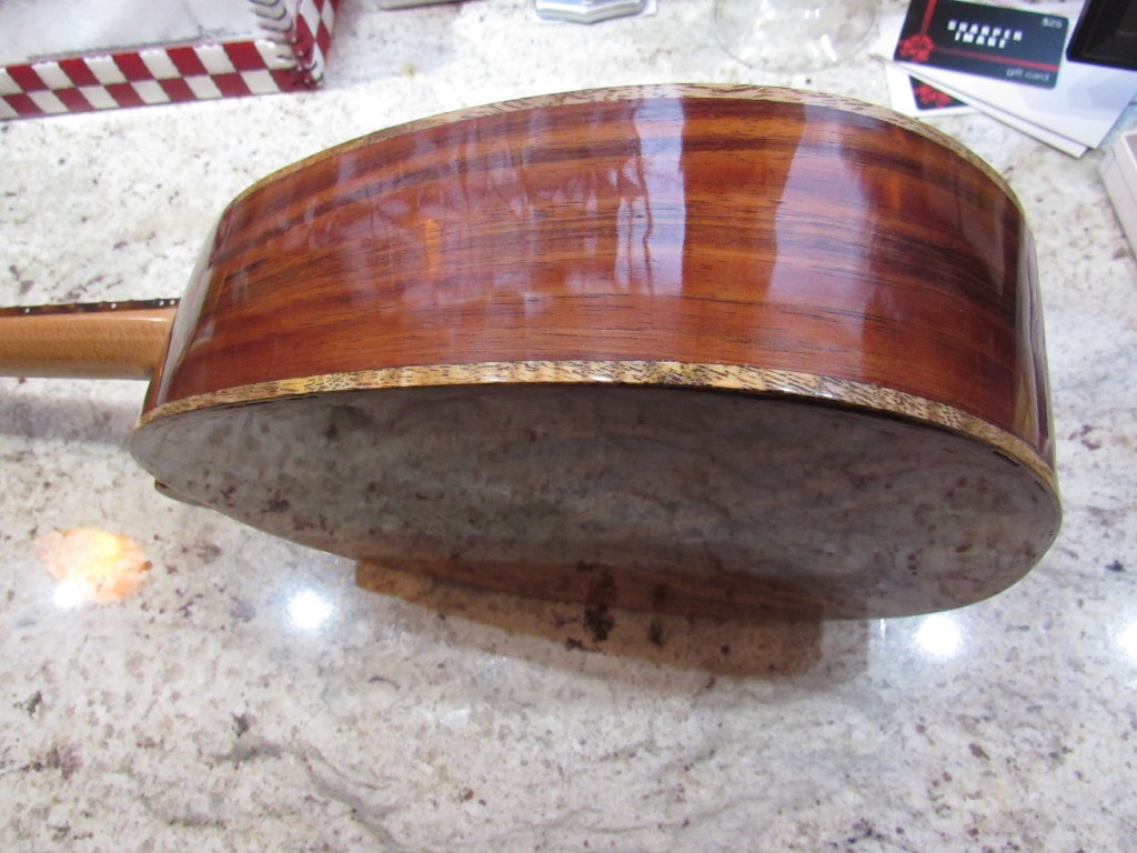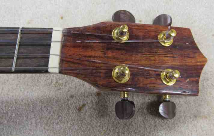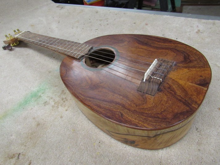 I began making Ukuleles about 8 years ago to use the smaller pieces of wood I had left over from guitar building. Ukuleles come if four sizes. Soprano, Concert and Tenor sizes all tuned a forth above normal guitar tuning (C-G-E-A) and Baritone, tuned like the top four strings of a guitar (D-G-B-E). Each size has a slightly increasingly larger body and a scale-length that increases by one inch. I primarily build the Portuguese (guitar-shaped) design in a concert size with a tenor neck to add more energy to the instrument. This is the most popular style with Hawaiian players.