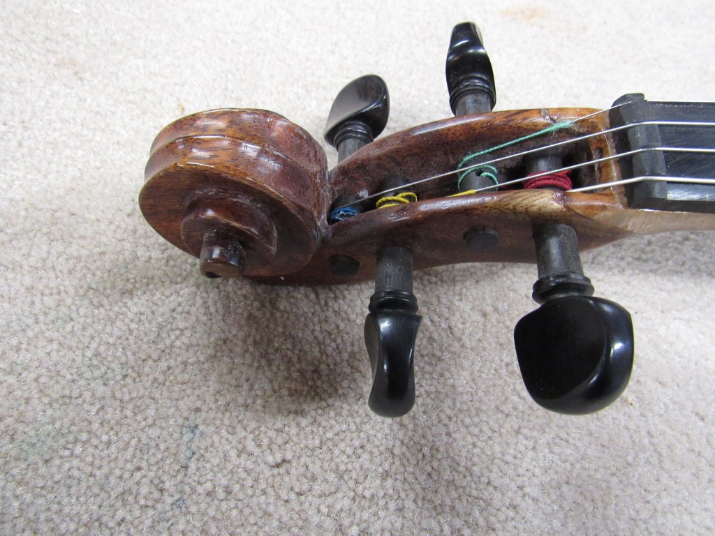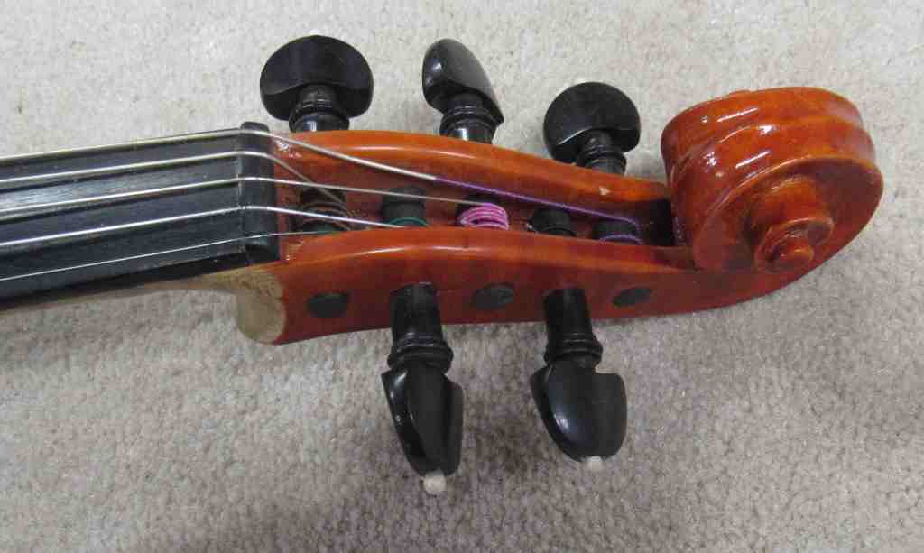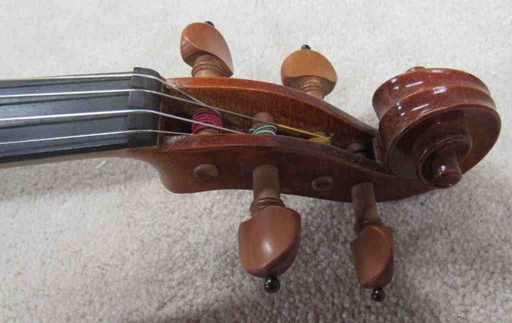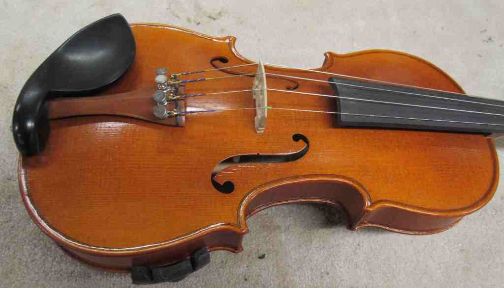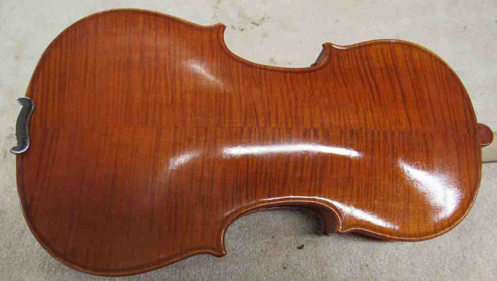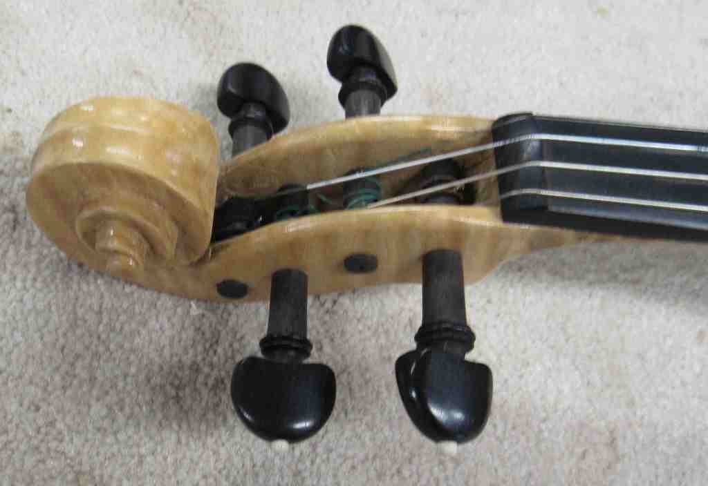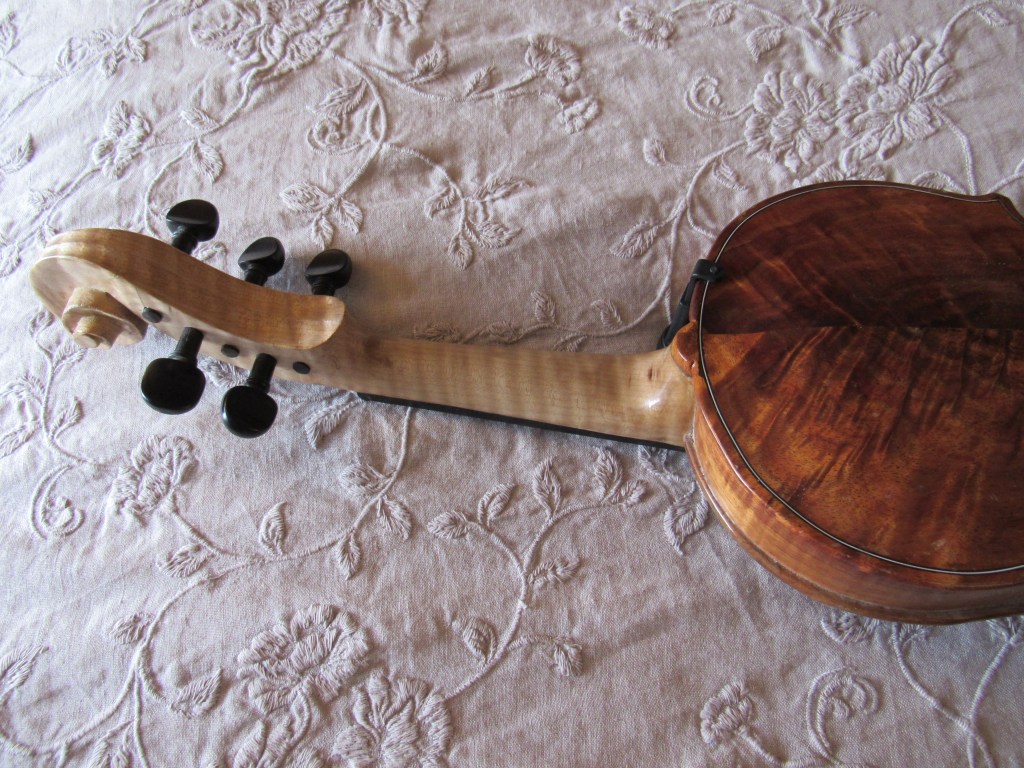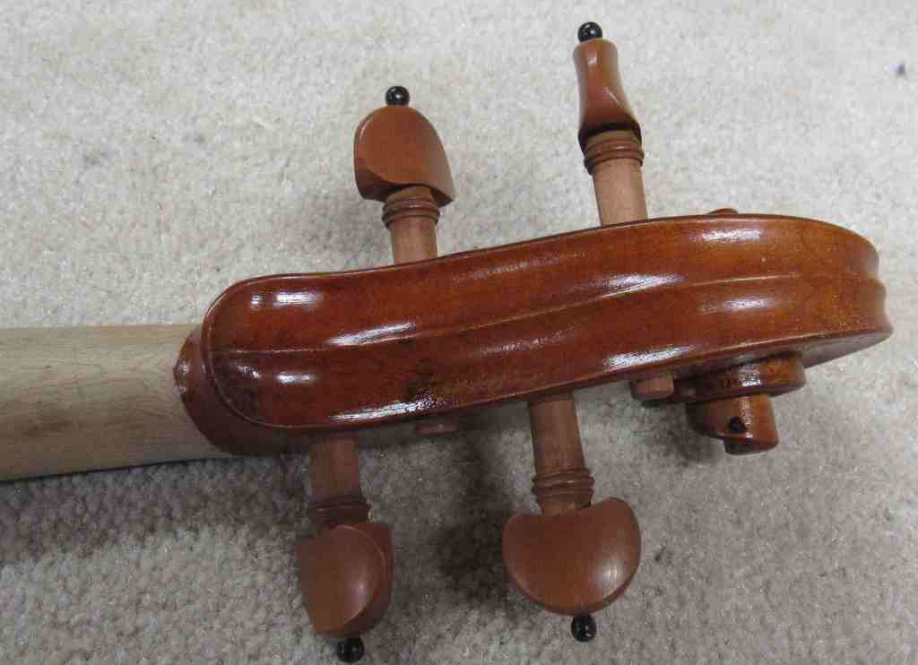This is a German violin I bought unfinished. I regraduated the top and finished it using Boxwood pegs and ebony fingerboard. The instrument is very clear and loud but a little harsh in tone. A good transition violin for an advanced beginner to intermediate player who wants a five string. Easy to play. includes case. $1200