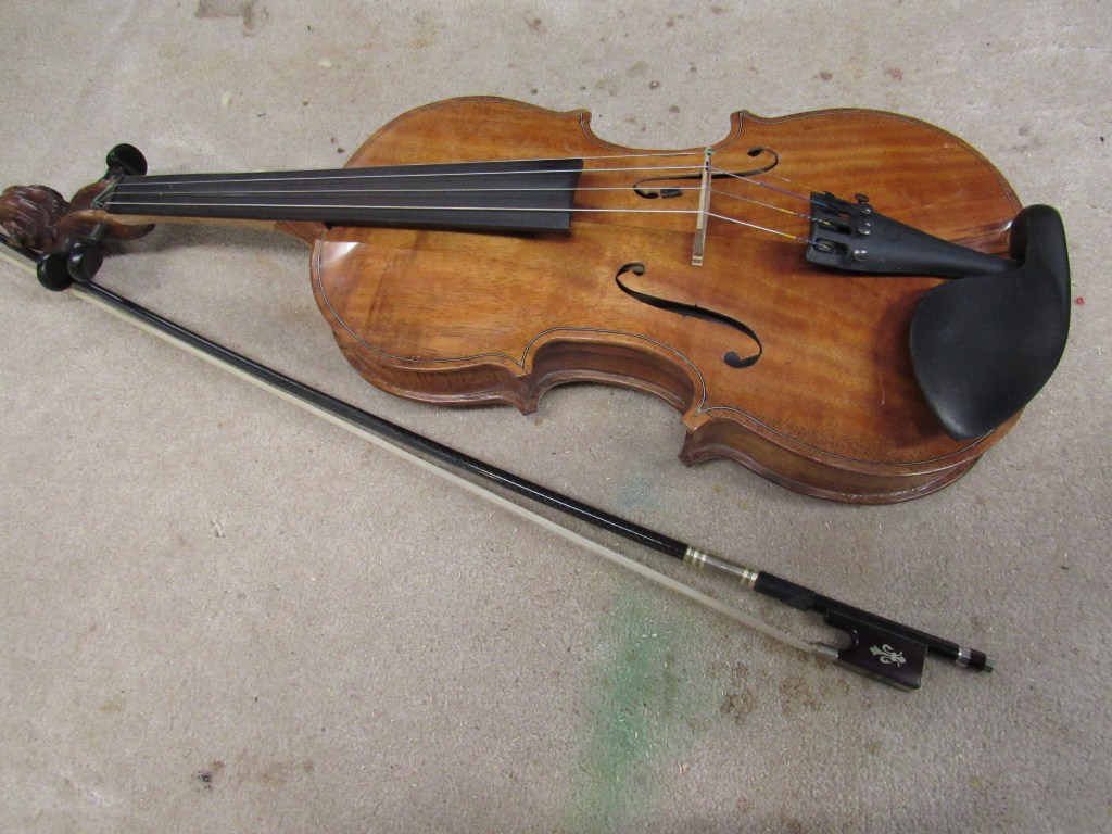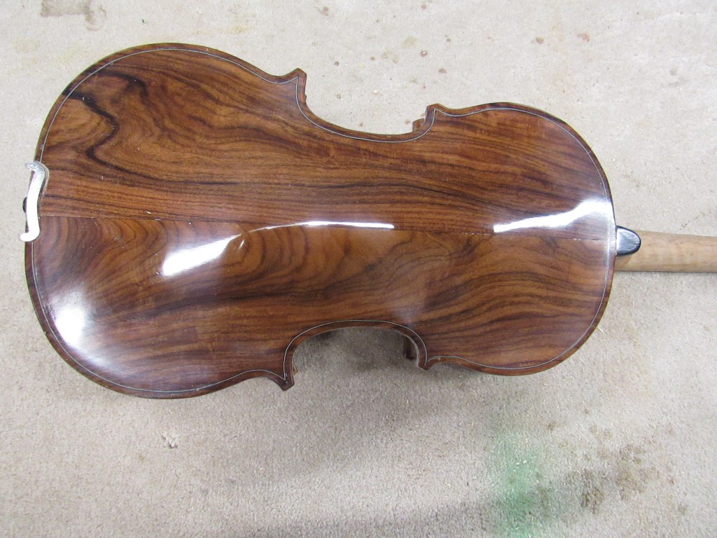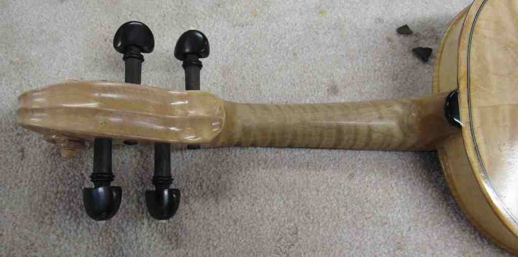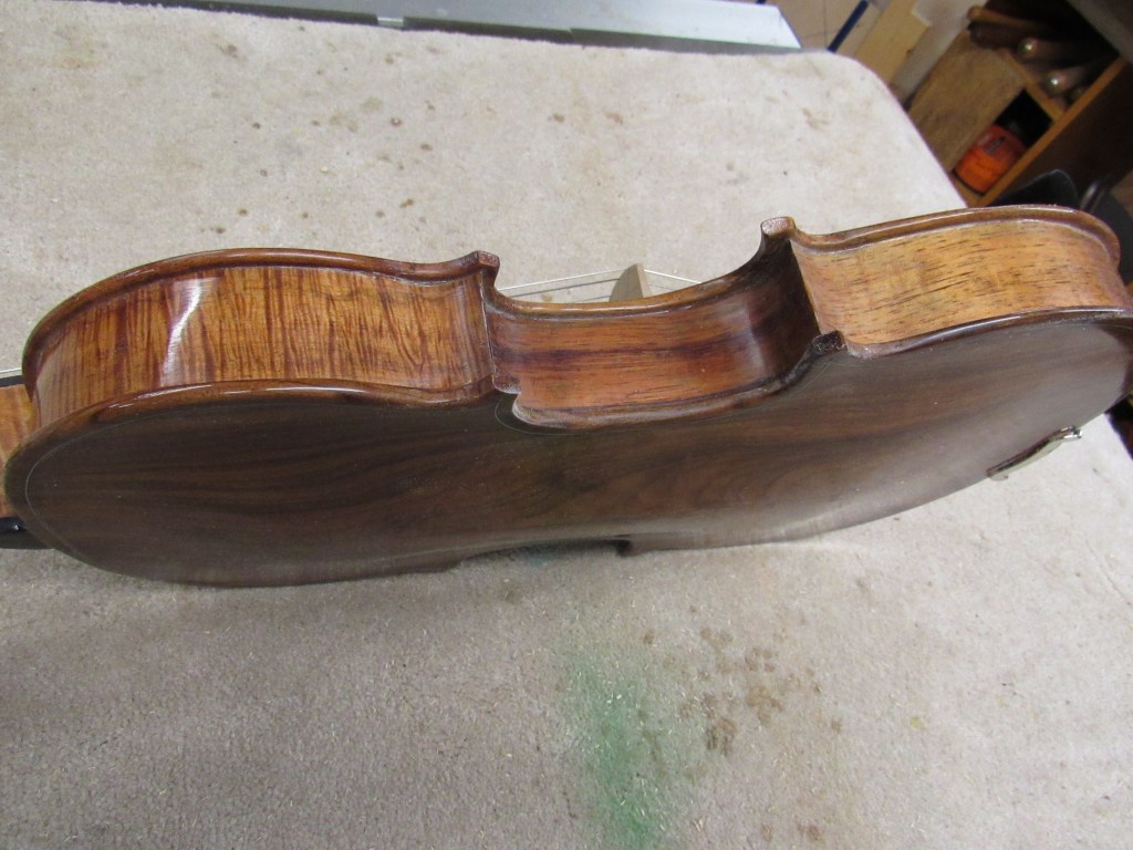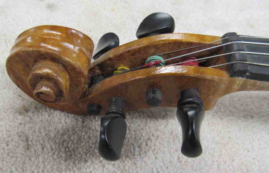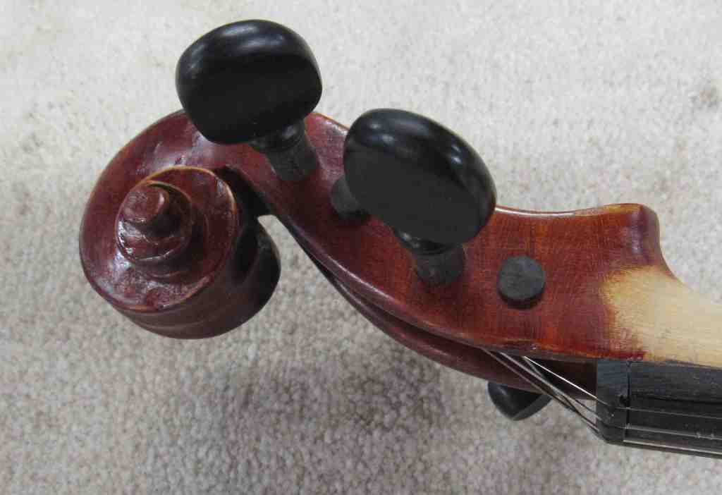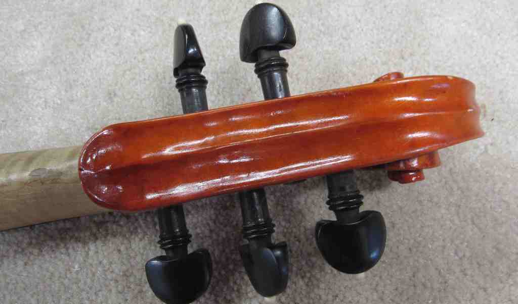 This is a German violin I bought unfinished. I regraduated the top and finished it using Boxwood pegs and ebony fingerboard. The instrument is very clear and loud but a little harsh in tone. A good transition violin for an advanced beginner to intermediate player who wants a five string. Easy to play. includes case. $1200
