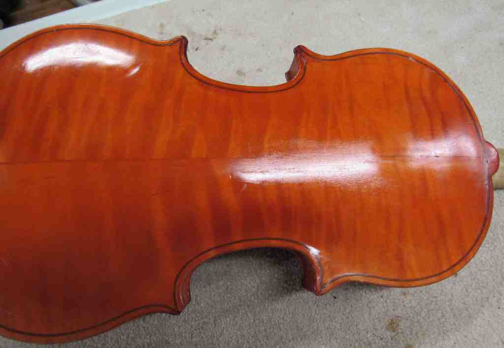 The best a new violin will ever sound is without any finish (white). The finish protects the wood but degrades the tone. The size, shape and placement of the f-holes is critical the the tone and volume as is the tone bar.